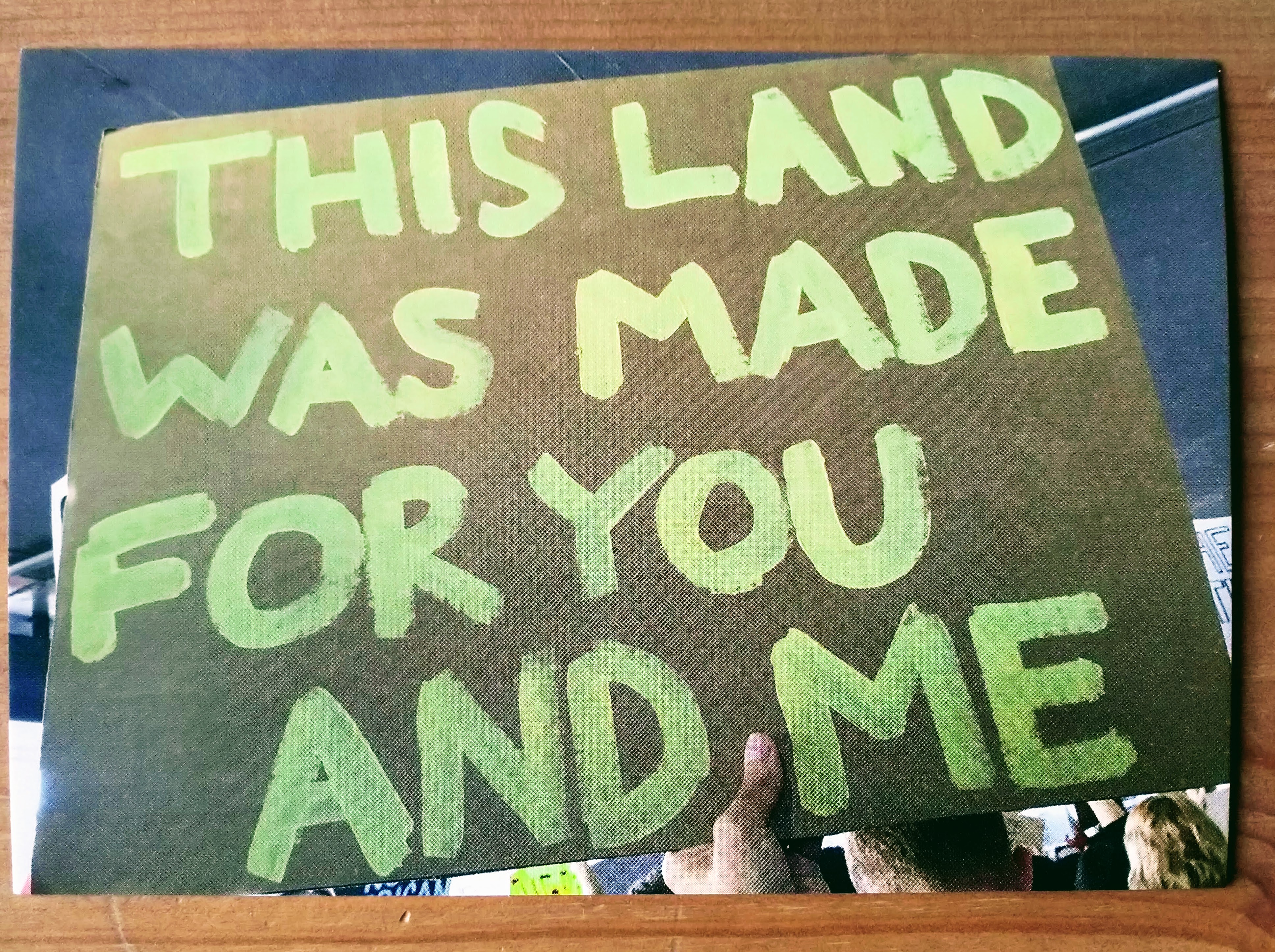 Today’s image from 50 protest postcards reminded me of the power of music and the simple messages they bring, along with some rather treasured childhood memories.