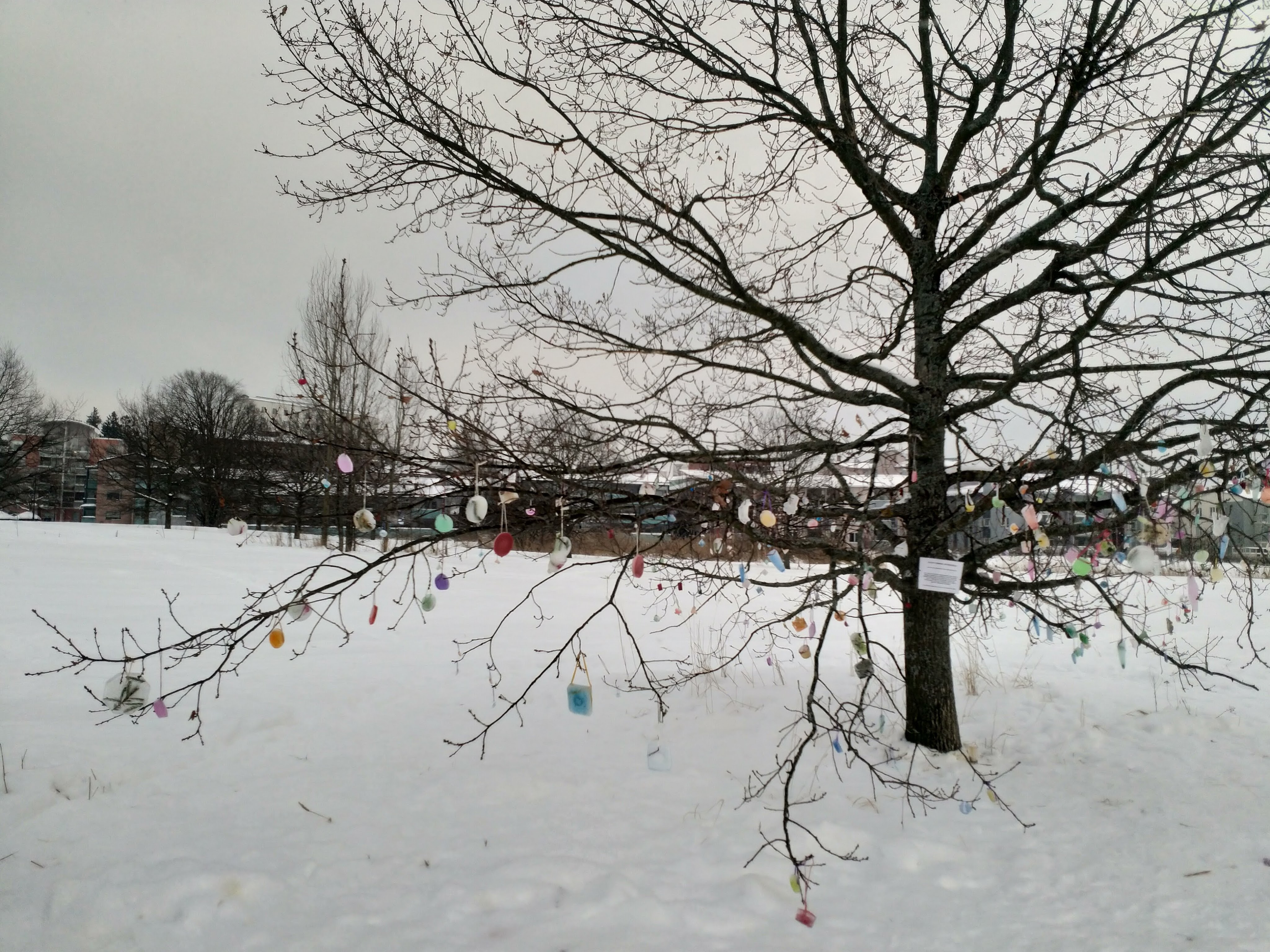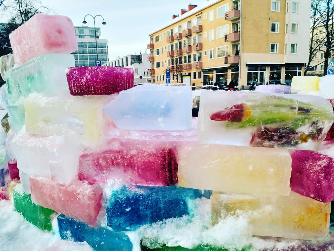 An older gentleman I passed near the ice ornament tree commented that he’s seen so many things like this this winter, objects made from frozen precipitation by members of communities. Not just here in Helsinki, but in other places as well. He described stumbling upon snow graffiti for the first time when he was in Estonia recently. He seemed to think Covid is inspiring us all to find ways to entertain ourselves and bring a bit of goodness and loveliness to us and to share with others.